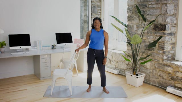 Activate your feet and calves and release tension in the lower body in this 7-minute workout using a chair for stability.